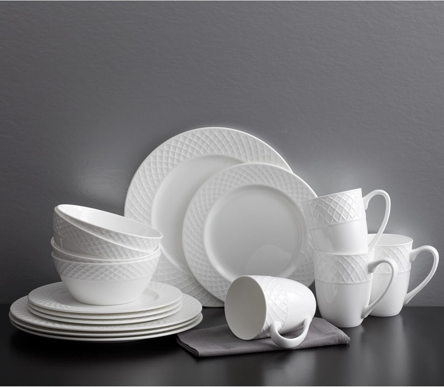 Simple, affordable, and reliable, this Amazon Basics set delivers excellent value. The clean white design works with any décor and transitions easily from casual to formal meals.