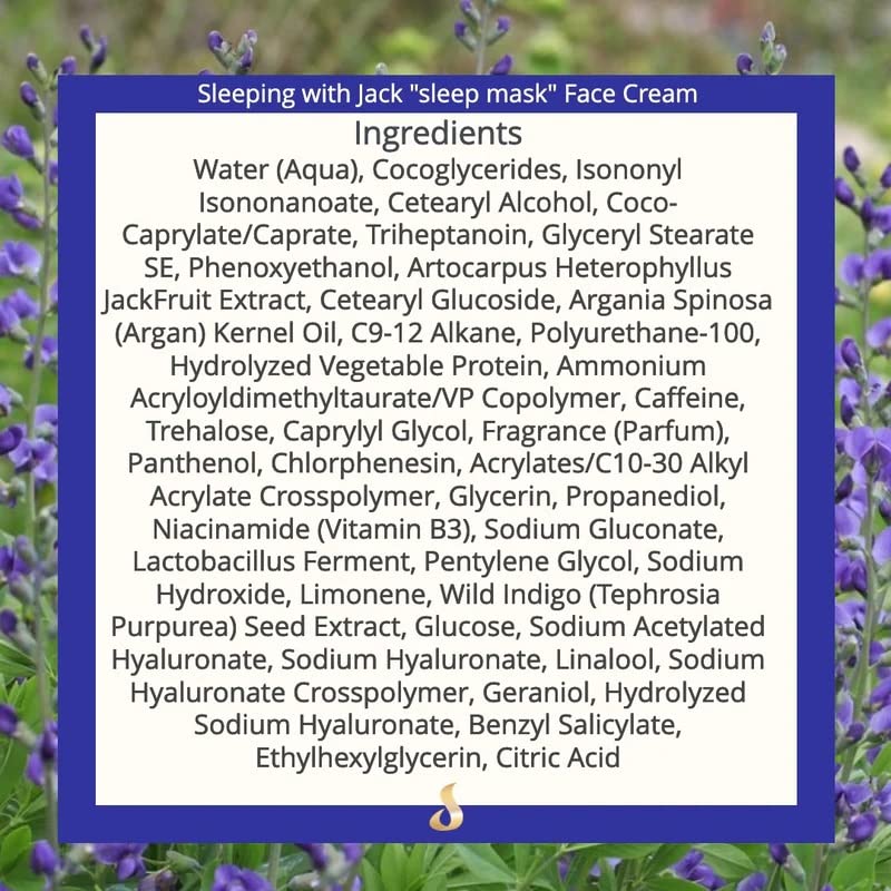 Suzy Cohen Sleeping with Jack Sleep Mask with Hyaluronic Acid and Jackfruit Extract. Face Moisturizer for Women with anti-aging ingredients for more collagen, elasticity and supple skin