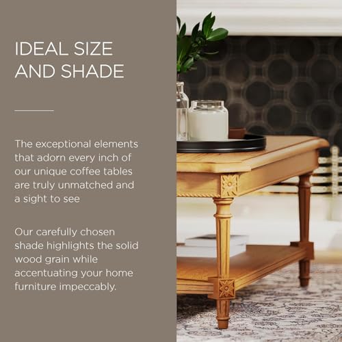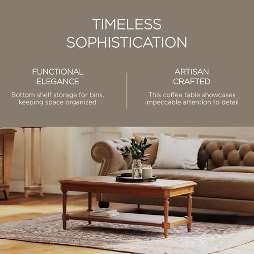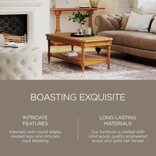 HAND-CRAFTED DETAILS: Boasting exquisite, hand-carved details, including rounded table edges, intricate clipped corners, sturdy reeded legs, and carved rope detailing, this coffee and tea table with storage shelf elevates the sophistication level of your living room, apartment, lake house, or front room furniture tenfold.