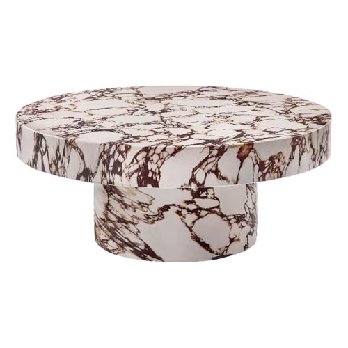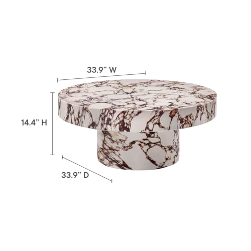 Modway Alora Round Concrete Coffee Table with Faux Stone Finish in Red Marble – Cement Accent Table for Living Room – Stone Patio Center Table – Indoor Outdoor 34 Inch Low Coffee Table