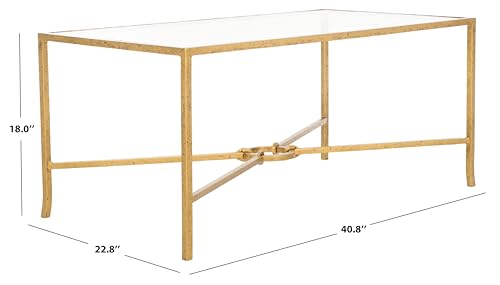 SAFAVIEH Couture Collection Tauri Brass Metal Glass Top Rectangle Coffee Table (Fully Assembled)