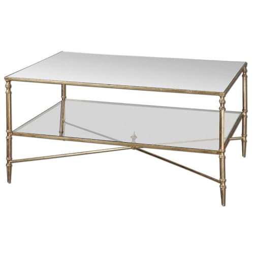 Uttermost’s Tables Combine Premium Quality Materials With Unique High-style Design.Finished In Gold Leaf With Heavy Antiquing On Iron Frame And Iron Cross Stretchers. Top Is Reinforced Mirror And Gallery Shelf Is Clear Tempered Glass. With The Advanced Product Engineering And Packaging Reinforcement, Uttermost Maintains Some Of The Lowest Damage Rates In The Industry.