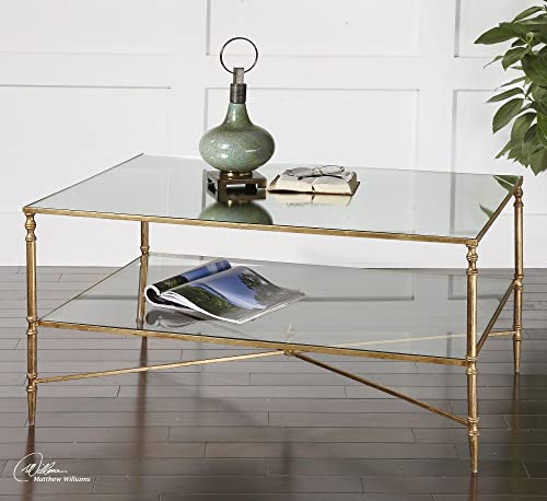 Uttermost 24276 Henzler – 37.75 inch Coffee Table, Gold Leaf Finish with Clear Tempered Glass