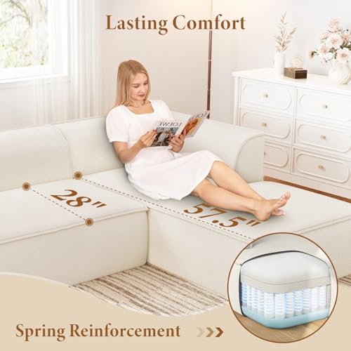 Comfortable Support: Expertly engineered with a high-density foam and spring system that delivers the perfect balance of plush softness and supportive structure—the integrated spring system provides lasting resilience and extended durability, while the memory foam delivers a sensation of cloud-like comfort. Designed for ultimate relaxation, the generous 28″ seat depth, elevated back cushion and arcuate armrests create an inviting lounging oasis, while the spacious 58″ chaise lounge offers ample room to stretch out. Thoughtfully incorporated ergonomic features ensure ideal support for prolonged sitting or reclining