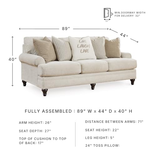 INSTANT STYLE: Furniture measures 89″ W x 44″ D x 40″ H. Arm height: 26″. Distance between arms: 71″. Seat depth: 27″. Seat height: 22″. Top of cushion to top of back: 17″. Leg height: 5″