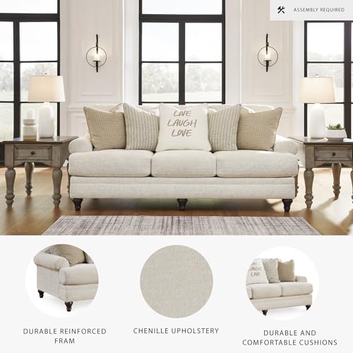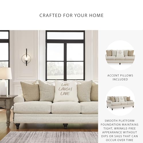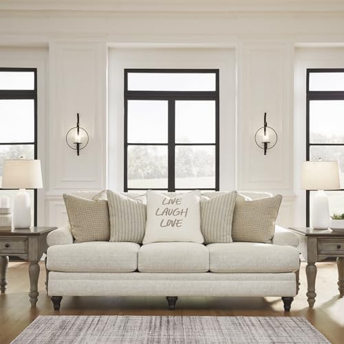 HANDSOMELY MADE: Built with a sturdy corner-blocked frame. Polyester upholstery. Reversible seat and back cushions. Decorative turn leg. Accent pillows included