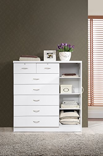 The Hodedah seven drawer chest strikes a perfect balance between your storage as well as design requirements. It is constructed out of wood and is available in multiple finishes. This chest has seven drawers, two of which have locks. Each drawer comes with extra support underneath which can handle extra weight. This chest also features a side door when open reveals shelves and hanging rod for extra storage space. This chest has ample space on the surface top to showcase a photo frame, an antique clock and a vase. This seven drawer chest by Hodedah has a clean and simple design making it easier for you to place it anywhere.