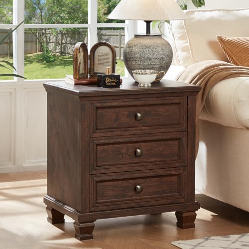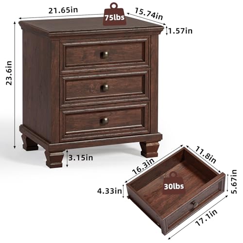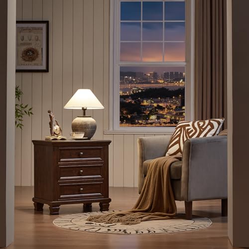 [Ample Storage Space] These large nightstands with 3 spacious drawers, provide plenty of room to store your bedtime essentials, such as books, glasses, and medications. The drawers glide smoothly and are equipped with durable retro handles for easy opening and closing.