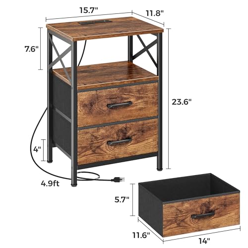 【Night Stand with 2 Drawers] A compact end table with surprisingly large storage! Thetabletop fits your lamp, books, or coffee cup easily, while 2 fabric drawers and an open shelf keep remotes, chargers, or bedtime reads neatly tucked away. Finally, a nightstand that actually holds everything you need