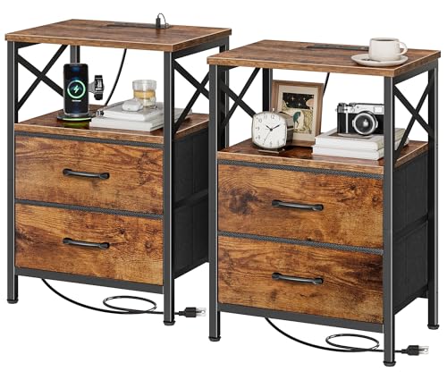 Nightstands Set with Charging Station and Drawers