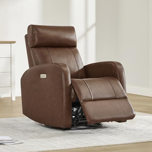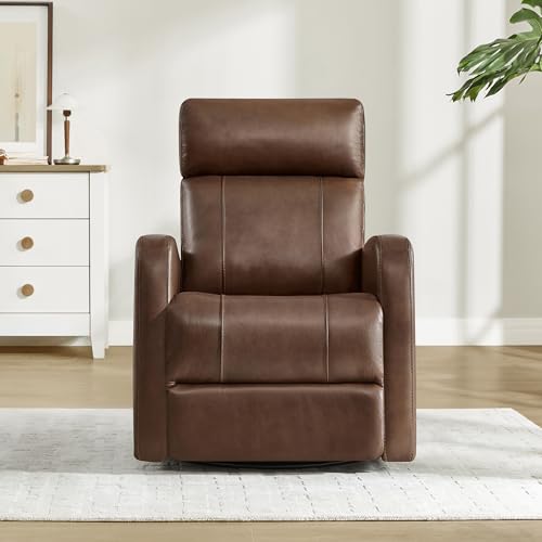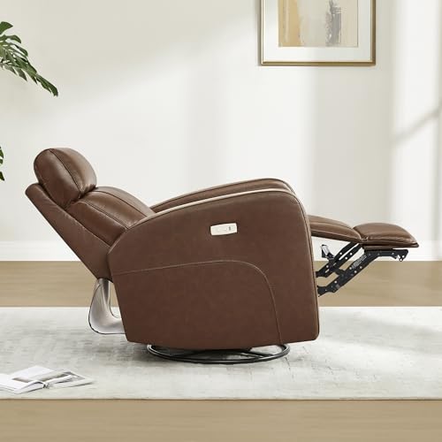CHITA Genuine Leather Power Swivel Glider Recliner Chair for Adults, FSC Certified Electric Nursery Rocker Recliner Chair for Living Room, Light Brown