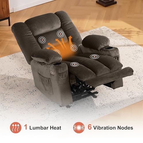 MCombo Zero Gravity Power Recliner Chair with Heat and Vibration Massage, Reclining Chair with USB & Type C Ports, Cup Holders for Living Room, Fabric 6079 (Dark Brown Medium 21.2″ Seat Width)