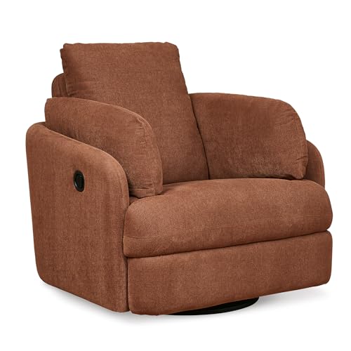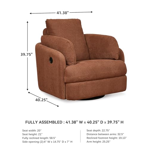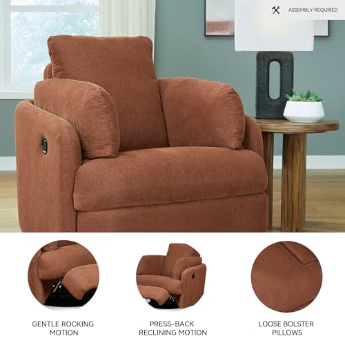 Signature Design by Ashley Modmax Contemporary Press-Back Swivel Glider Rocker Recliner with Machine Washable Cover, Hidden Storage Compartments and 2 Bolster Pillows, Orange