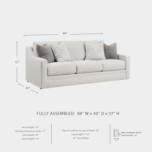 DIMENSIONS: This item measures 88″ W x 40″ D x 37″ H. Seat depth: 24″. Seat height: 19″. Arm height: 24″. Distance between arms: 77″. Leg height: 1.25″. Fits through doorways 32″ or wider
