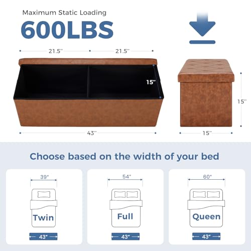 43-Inch Foldable Storage Ottoman – Chic & Durable