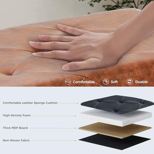 【Tough & Plush】: Constructed from PVC leather and upgraded, thickened foam padding, this storage ottoman is built to be more durable and long-lasting. Thickened MDF boards prevent warping, ensuring excellent stability and practicality, with a weight capacity of up to 350 lbs—so you can safely stand on it or use it as a ladder or climbing aid.