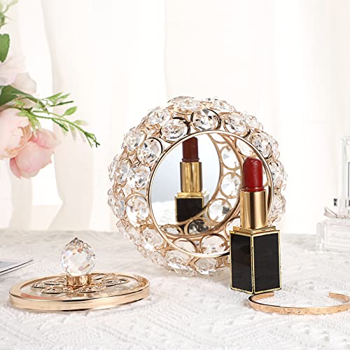 Beautiful Exquisite Crystal Box – Made of sparkling crystal intricately woven into metal rings around a gorgeous mirrored base, handcraft shinny crystal looks dazzling. There is a metal flower pattern and a crystal handle on the clear glass lid make this jewelry box looks more unique