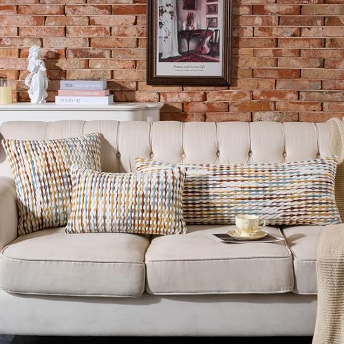 【Unique Design】Colourful rainbow chenille striped combine 3D Geometric patterns make this pillow cover so distinctive and eye catching.Cute colorful tassels and Tufted process brings a stylish look in your room. The cushion covers are great for a pop of color in any room.