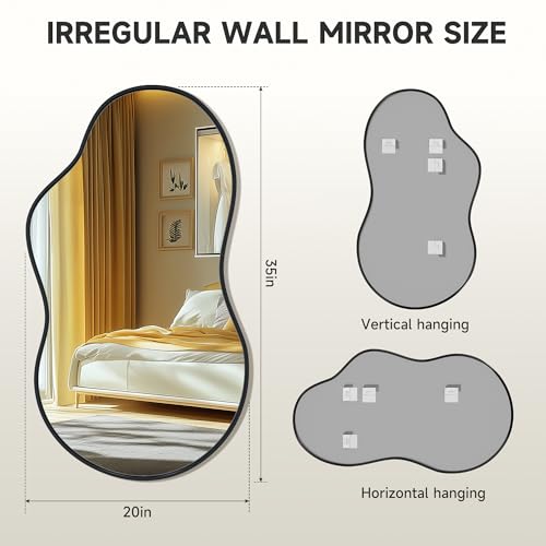 UNIQUE DESIGN – Hasipu irregular asymmetrical wall mirror design style is unique, with a unique shape resembling clouds, adding a touch of artistic color to your home. Wall mirror decoration can be installed vertically or horizontally on the wall, with pre installed rear hooks, making it well suited for various spaces such as living rooms, bedrooms, bathrooms, changing rooms, etc