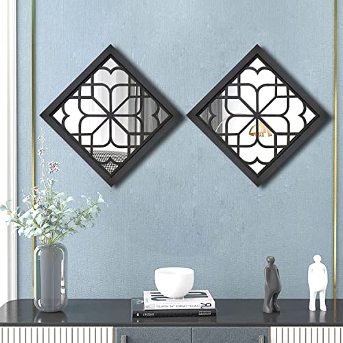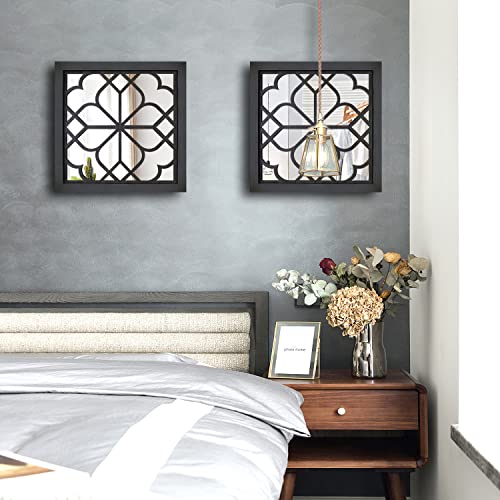 Rustic Black Square Wall Mirror – 2 PCS Farmhouse Decor