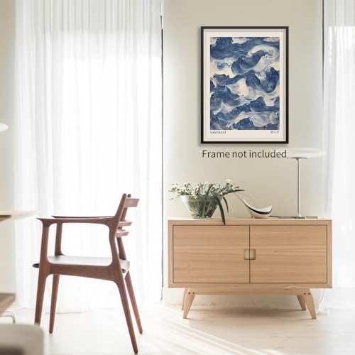 Blue Wall Art: This captivating poster features dynamic, swirling waves rendered in deep indigo and cerulean hues. Aesthetic posters provide decoration for kitchen, dining room, bar, dorm, living room, bedroom, apartment, hotel