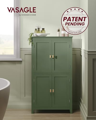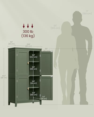 VASAGLE Floor Storage Cabinet, Freestanding Storage Unit with 4 Doors, Adjustable Shelves, 11.8 x 23.6 x 43.3 Inches, for Entryway, Bathroom, Forest Green UBBC552C01
