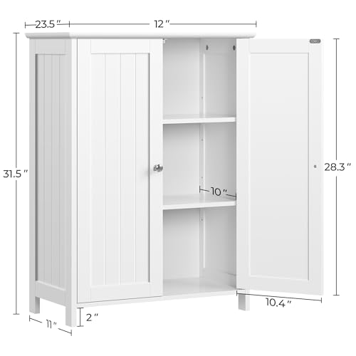 Yaheetech Bathroom Floor Cabinet, Modern Storage Freestanding Organizer Cabinet with Adjustable Shelves & Double Doors, 3-Tier Home Living Room Furniture, White