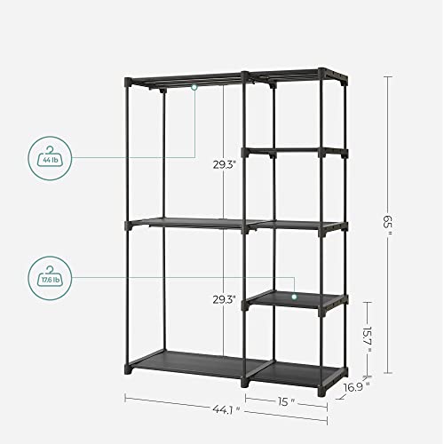 SONGMICS Portable Closet, Freestanding Closet Organizer, Clothes Rack with Shelves, Hanging Rods, Storage Organizer, for Cloakroom, Bedroom, 44.1 x 16.9 x 65 Inches, Black URYG24BK