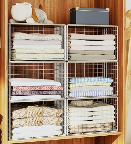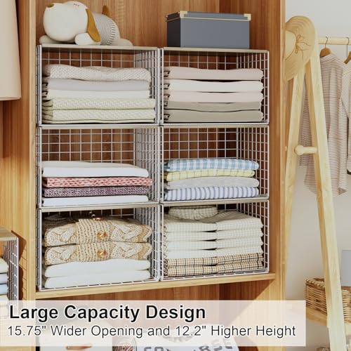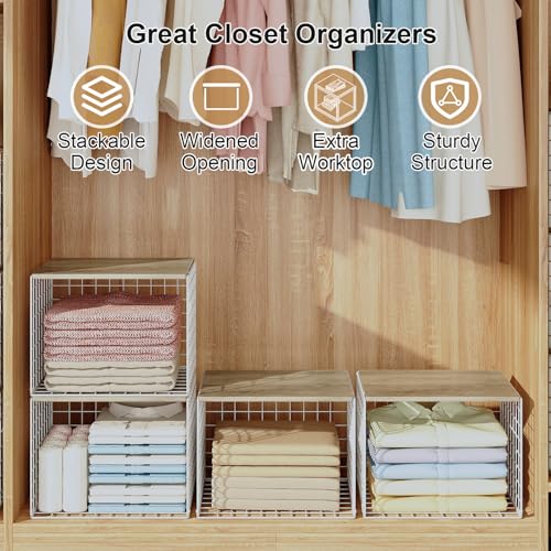 【𝗠𝘂𝗹𝘁𝗶-𝗨𝘀𝗲 𝗦𝘁𝗼𝗿𝗮𝗴𝗲】: With a top board, widened opening, sturdy structure and stackable design, this versatile storage shelf basket fits closets, pantries or countertops. Great to store clothes, books, toys, shoes, bags, purses, files, towels, artworks or decor.