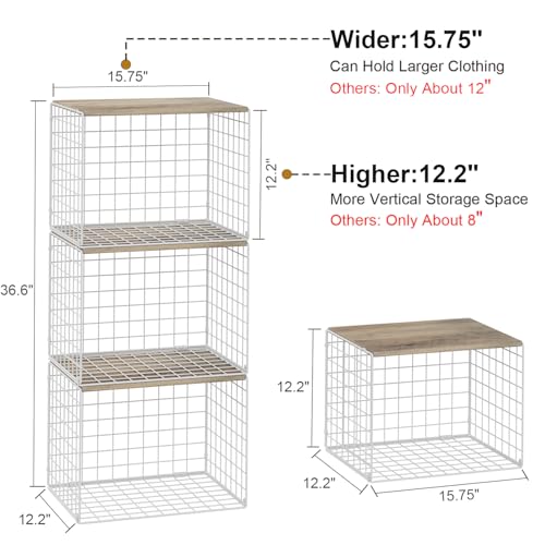 【𝗦𝘁𝘂𝗿𝗱𝘆 𝗦𝘁𝗿𝘂𝗰𝘁𝘂𝗿𝗲 & 𝗦𝘁𝘆𝗹𝗶𝘀𝗵 𝗖𝗼𝗹𝗼𝗿】: The clothing storage organizer is made of classic black metal wire and light gray engineered wood. It has a stylish, furniture-matching color and is sturdier/more durable than cloth/plastic bins.
