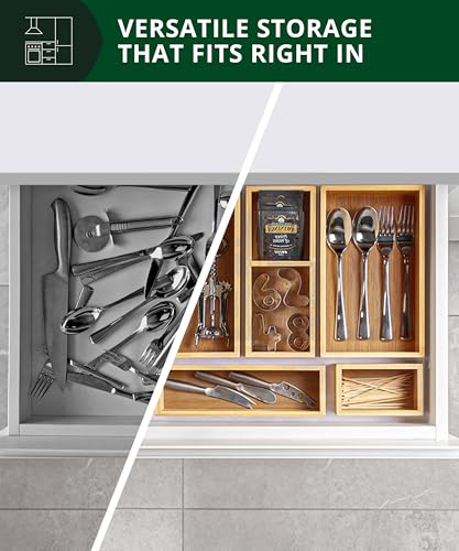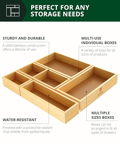 ROYAL CRAFT WOOD 5-Piece Bamboo Drawer Organizer Set โ€“ Multi-Use Storage Trays for Kitchen, Bathroom, Office, Makeup, Jewelry & More โ€“ Junk Drawer Tray, Utensil Holder, Storage Box & Bin Set (5 Boxes)