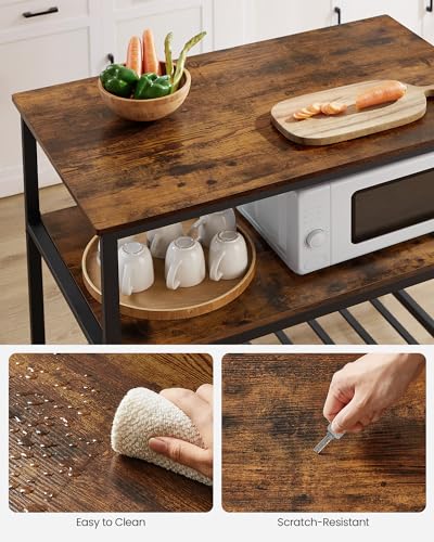 VASAGLE Kitchen Island with 3 Shelves, 39.4 Inches Width Kitchen Shelf with Large Worktop, Stable Steel Structure, Industrial, Easy to Assemble, Rustic Brown and Black UKKI005B01