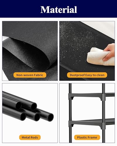 STABLE STRUCTURE: This shoe organizer Made from metal tubes with plastic frame. The non-woven fabric shelves protect footwear from dents and scuffs while preventing dust from falling through layers, keeping your collection clean and well-maintained.