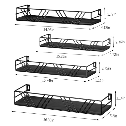 Floating Shelves for Wall Set of 4, Different Sizes Mounted Wood Floating Shelf, Wall Shelves for Living Room,Bedroom, Bathroom, Kitchen, Farmhouse Decor, Office