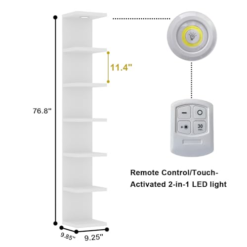 Versatile 7 Tier Wall Shelf Unit,White Lack Wall Shelf,Display Floating Shelf with LED Remote Control Light