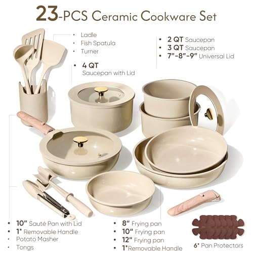 CAROTE 23PCS Pots and Pans set Non Stick, Ceramic Cookware Set, RV Kitchen Cooking Set Removable Handles, Oven Safe, Induction Coolware, Non-toxic Kitchen Cooking Set, PFAS and PFOA Free