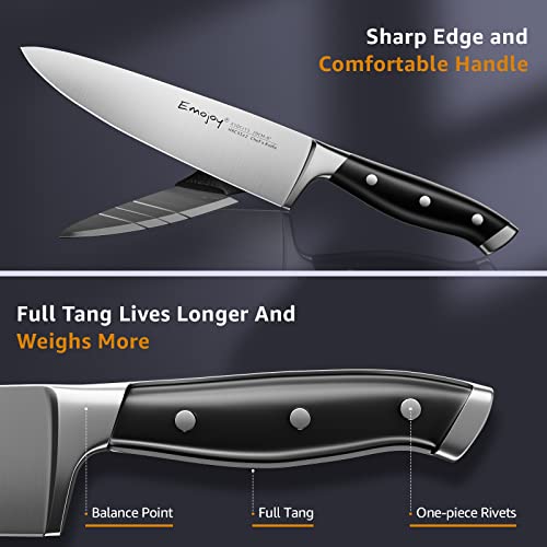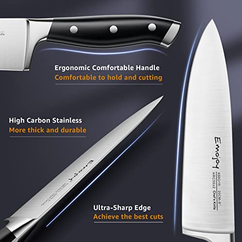 Emojoy Knife Set, 18-Piece Kitchen Knife Set with Block Wooden, Manual Sharpening for Chef Knife Set, German Stainless Steel
