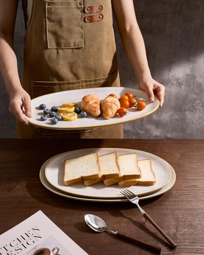 Dishwasher and Microwave Safe: Famiware oval plates are made of premium stoneware. Each serving platters and trays is Dishwasher and microwave safe.