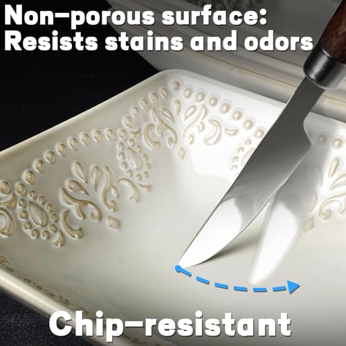 Artisan-crafted Rectangular Shape – Break the Round Mold: Artena’s innovative rectangular pasta bowls offer a fresh alternative to traditional round dishes, bringing modern elegance and uniqueness to your dining table.Stain-proof glossy finish, stacks neatly. Chip-resistant ceramic—looks fancy but dishwasher-safe for everyday.Each handcrafted dinner plate has unique glaze textures & embossed patterns—no two are exactly alike- – way prettier than plain white ones!