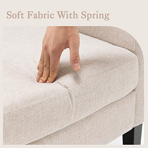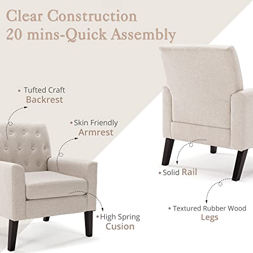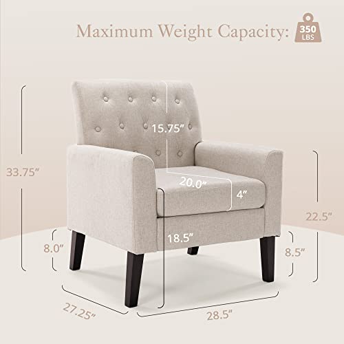 LUE BONA Linen Color Linen Accent Chair 18.5″ H, Button Tufted Upholstered Modern Armchair, Comfy Living Room Chair with Arms, Arm Chairs for Living Room, Bedroom, Small Space