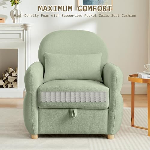 【Sturdy Solid Wood Frame】Crafted from durable solid wood, this modern accent sofa is built for lasting stability and everyday use. It features an ergonomic design with a high-resilience foam backrest and supportive lumbar pillow, delivering superior comfort even during long periods of sitting.