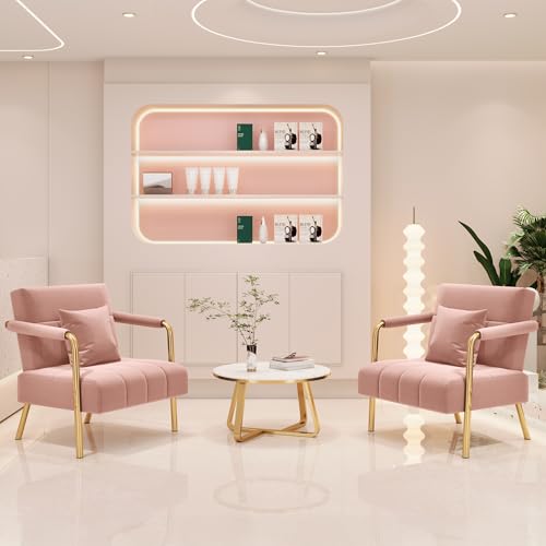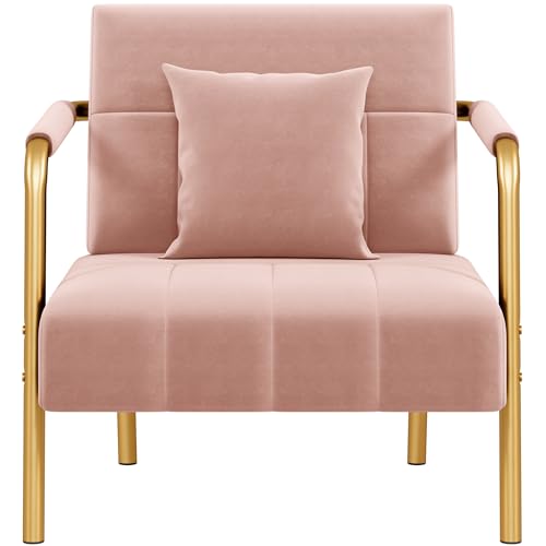 Yaheetech 30″ W Accent Chair Velvet Oversized Armchair Living Room Chair with Golden Frame & Cozy Pillow for Living Room, Bedroom, Office Pink