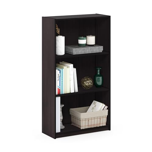 Furinno Basic 3-Tier Bookcase Storage Shelves, Dark Walnut