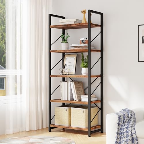5-Tier Open Multifunctional Bookshelf:This 5 shelf bookshelf provides a very wide storage space, you can use it to place all kinds of items as you see fit. Books, photo albums, crafts, potted plants and etc. SIZE: 23.6″L × 11.8″W × 62.2″H