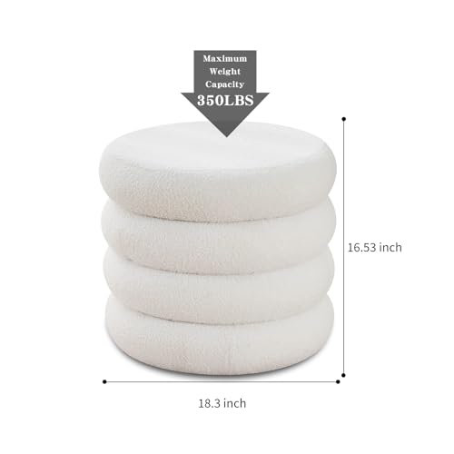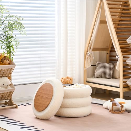 Wimarsbon Round Storage Ottoman, Modern Sherpa Footstool, Teddy Vanity Stool with Flip-Top Tray, Makeup Chair for Home Decor, Upholstered Footrest for Living Room & Bedroom (White)