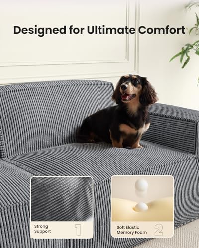 Unique Corduroy Fabric: Upholstered in smooth, breathable corduroy, this Cloud Sectional Couch features an L-shaped chaise sofa design that blends comfort with quiet elegance. The fine ribbed texture adds visual warmth and provides a luxuriously soft, inviting seating experience.