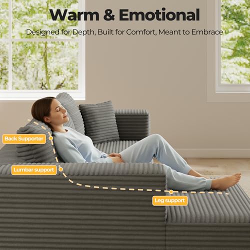 𝐋𝐮𝐱𝐮𝐫𝐢𝐨𝐮𝐬 𝐒𝐨𝐟𝐭 𝐂𝐨𝐫𝐝𝐮𝐫𝐨𝐲 𝐅𝐚𝐛𝐫𝐢𝐜: Treat yourself to the luxurious feel of our upgraded, wrinkle-resistant corduroy couch fabric. Its plush texture adds warmth and sophistication to any room, while the premium, high-quality material promises long-lasting comfort throughout the year.