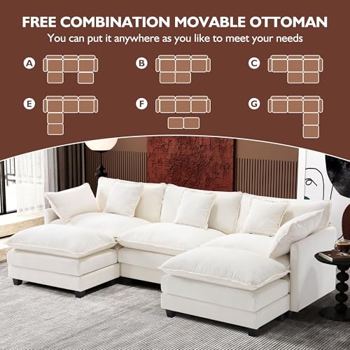 Ihanherry 111.4-Inch U-Shaped Cloud Couch with Ottomans