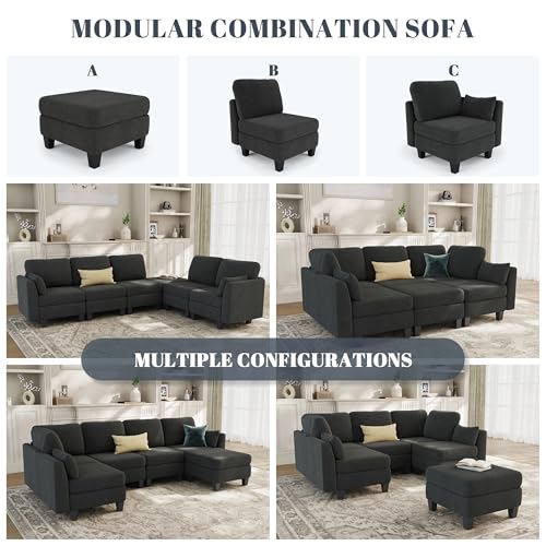 Sectional Sleeper Sofa, 6 Seaters Modular Sleeper Sofa Couch, Comfy Sectionals Couches Bed, Convertible Sofas with Ottomans, Modular Sectional Couches for Living Room, Dark Grey
