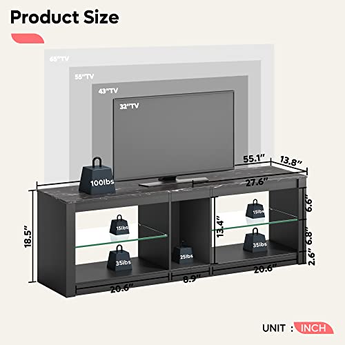 【Customize Storage Space】This 55 inch tv stands for living room has 5 open compartments to store your PS4 gaming devices, Xbox consoles, DVD, speaker, family photos, ect. The middle glass shelf can be adjusted to different heights.